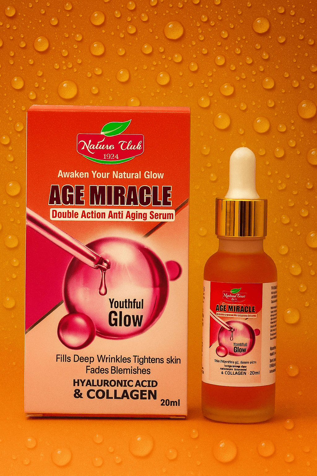 The Age Miracle Anti-Aging Serum is an intensive, double-action treatment designed to fight visible signs of aging. Powered by Hyaluronic Acid and Collagen, it helps fill deep wrinkles, tighten skin, and fade blemishes—revealing a smoother, firmer, and more radiant complexion.