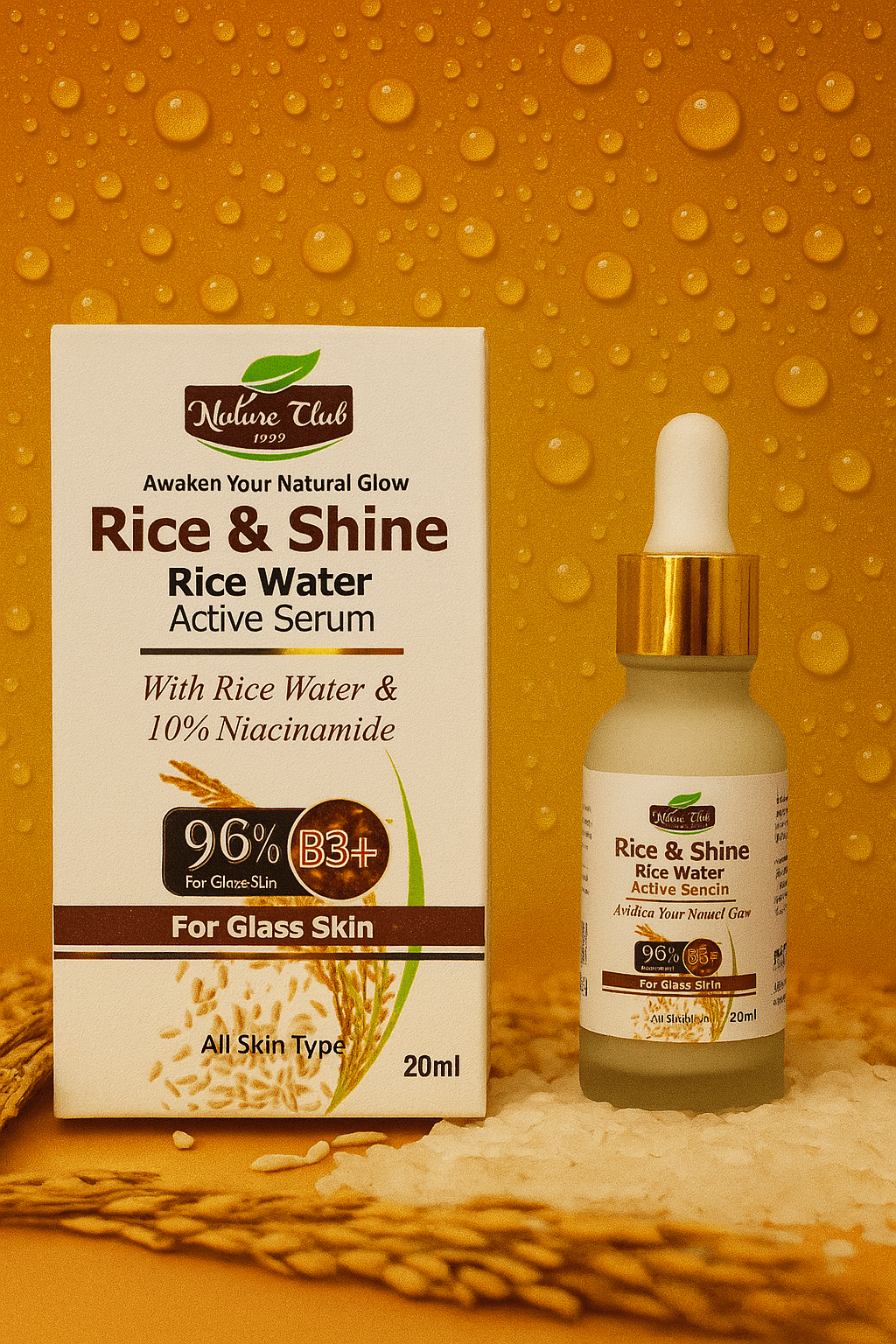 The Rice & Shine Active Serum combines 10% Niacinamide (B3+) with pure Rice Water to deeply hydrate, brighten, and clarify the skin. It helps enhance your natural glow, delivering a smooth, radiant, and “Glass Skin” finish suitable for all skin types.